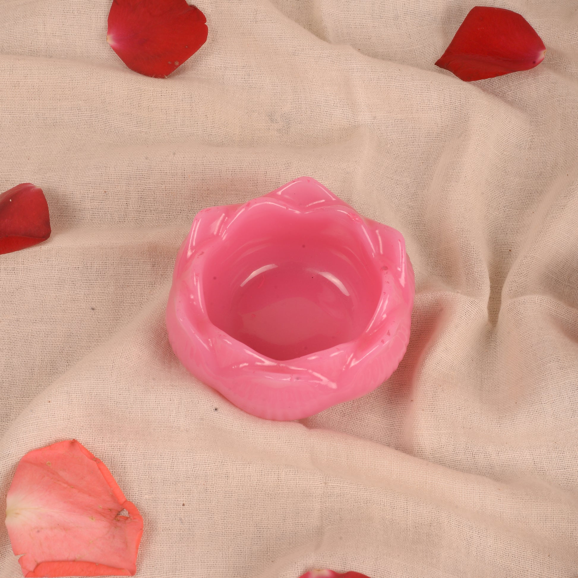 Bring serenity and elegance to your home with this handcrafted Resin Lotus Tealight Candle Holder. Designed in a delicate lotus shape, it adds a touch of purity and calmness to any corner of your home, mandir, or workspace. The soothing finish beautifully complements any décor, making it perfect for both daily use and festive occasions.